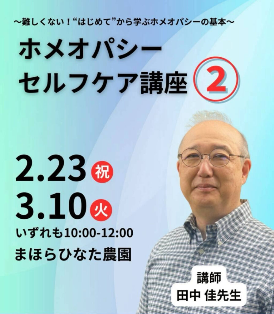 | 講演会名称 | ホメオパシーセルフケア講座2:2/23、3/10 |